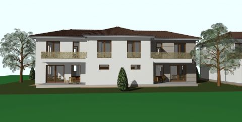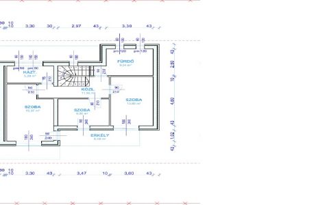 Az emeleten három kényelmes méretű szoba kerül kialakításra, ideális elosztásban családok számára. A modern fürdőszoba WC-vel együtt készül, a szobákban pedig beépített szekrények elhelyezésére is lehetőség nyílik. A lakáshoz egy 10,8 m²-es erkély tartozik, amely két szobából is közvetlenül elérhető, így kényelmes és jól használható szabadtéri teret biztosít a mindennapi pihenéshez.