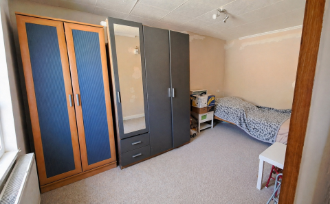 Az első lakrész fürdőszobája felújítás alatt áll. A helyiségekben tisztasági festés megtörtént. Az ingatlant korábban két külön bérleményként hasznosították.