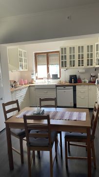 Helyiségek: konyha + étkező, nappali, 1 szoba + 3 félszoba, fürdőszoba (zuhanyzóval), két WC helyiség, közlekedő